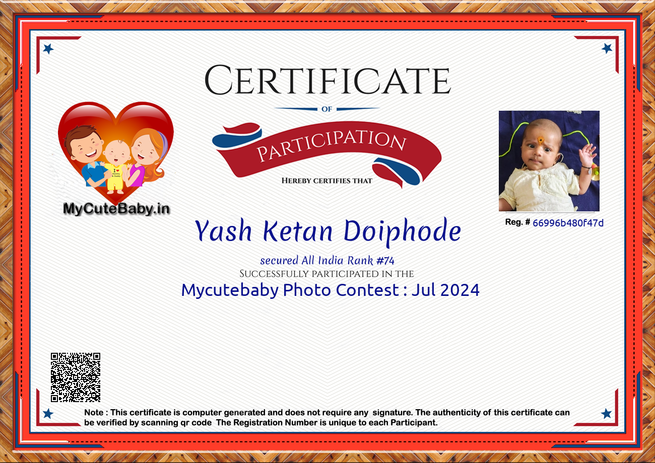 Participation certificate for all the participants whose mycutebaby votes are more than 1000.