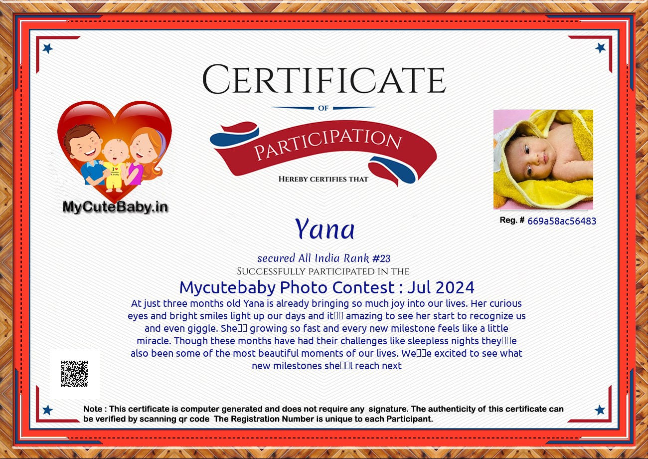 Participation certificate for all the participants whose mycutebaby votes are more than 1000.