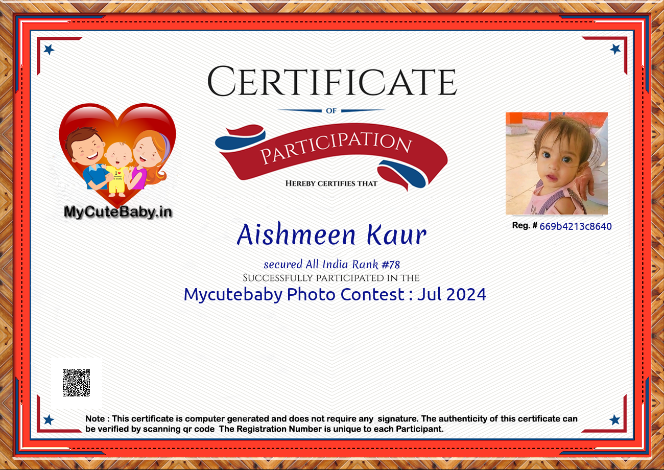 Participation certificate for all the participants whose mycutebaby votes are more than 1000.