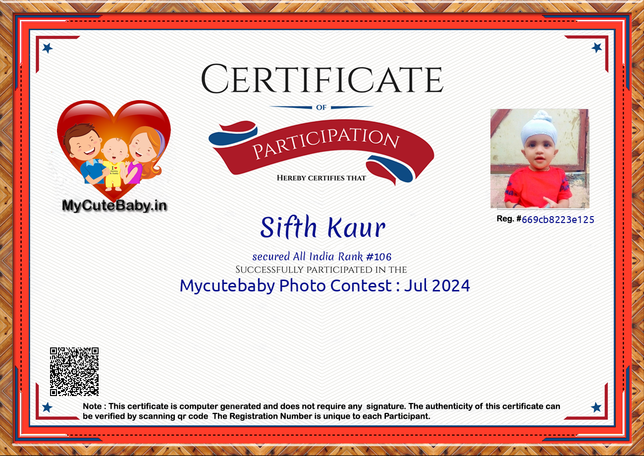 Participation certificate for all the participants whose mycutebaby votes are more than 1000.
