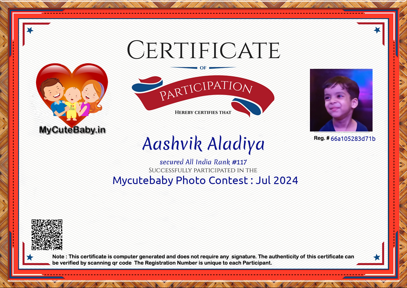 Participation certificate for all the participants whose mycutebaby votes are more than 1000.