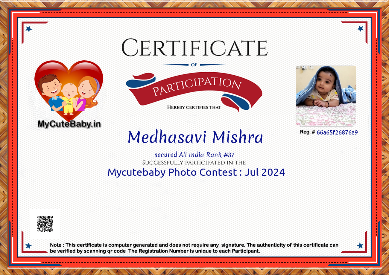 Participation certificate for all the participants whose mycutebaby votes are more than 1000.