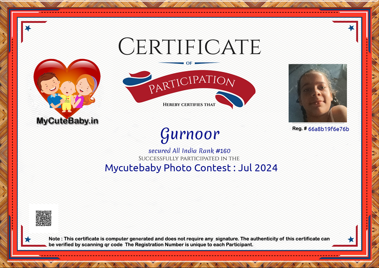 Participation certificate for all the participants whose mycutebaby votes are more than 1000.