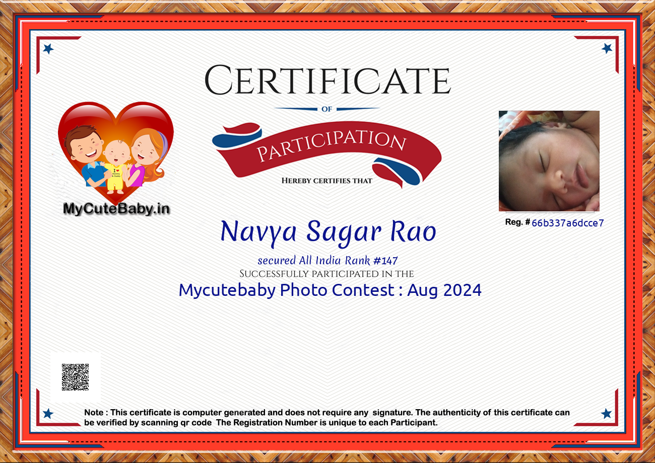 Participation certificate for all the participants whose mycutebaby votes are more than 1000.