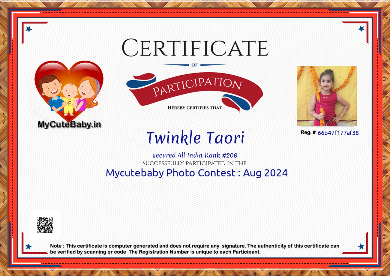 Participation certificate for all the participants whose mycutebaby votes are more than 1000.