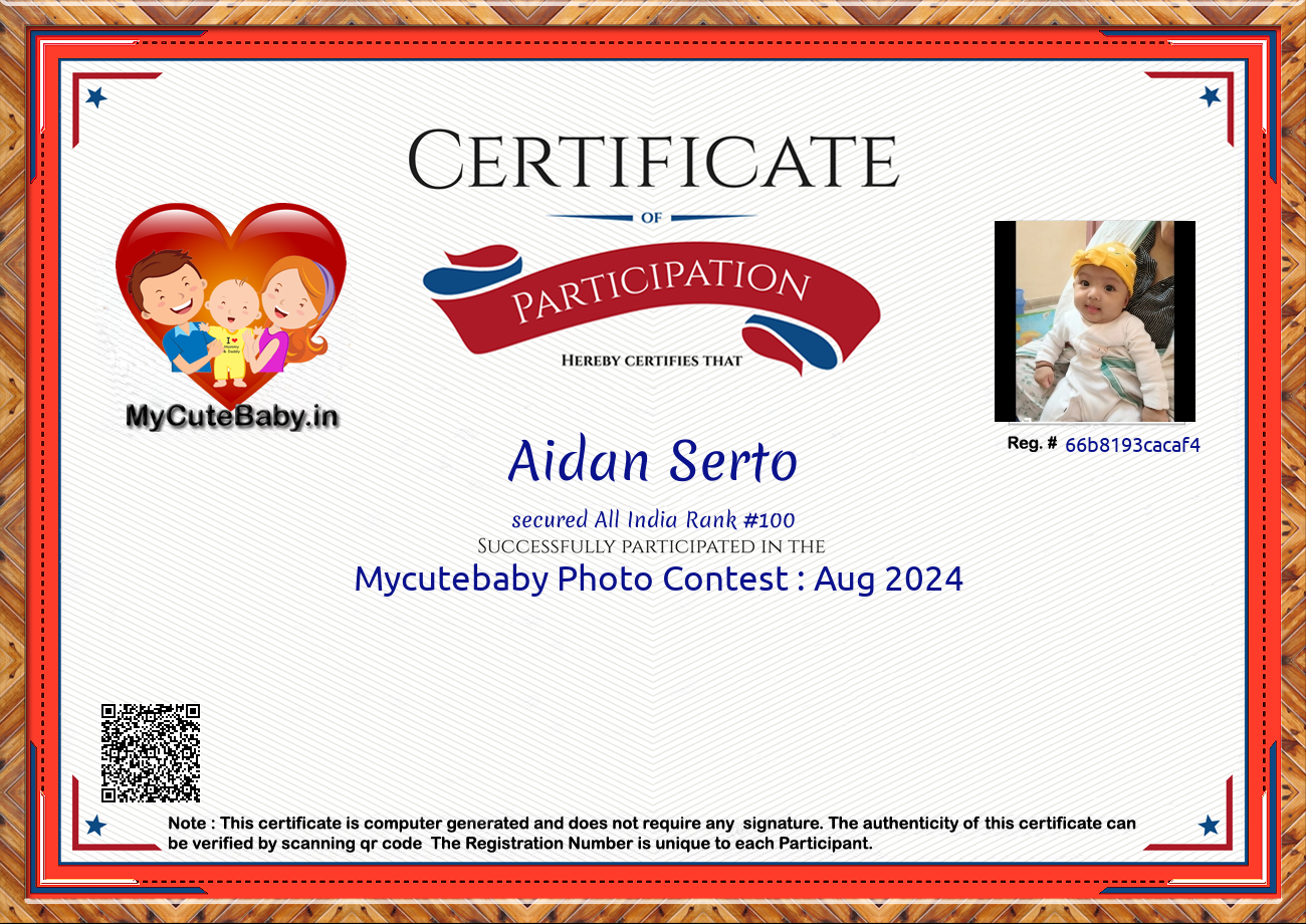 Participation certificate for all the participants whose mycutebaby votes are more than 1000.