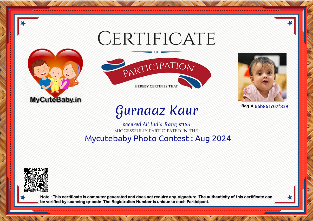 Participation certificate for all the participants whose mycutebaby votes are more than 1000.