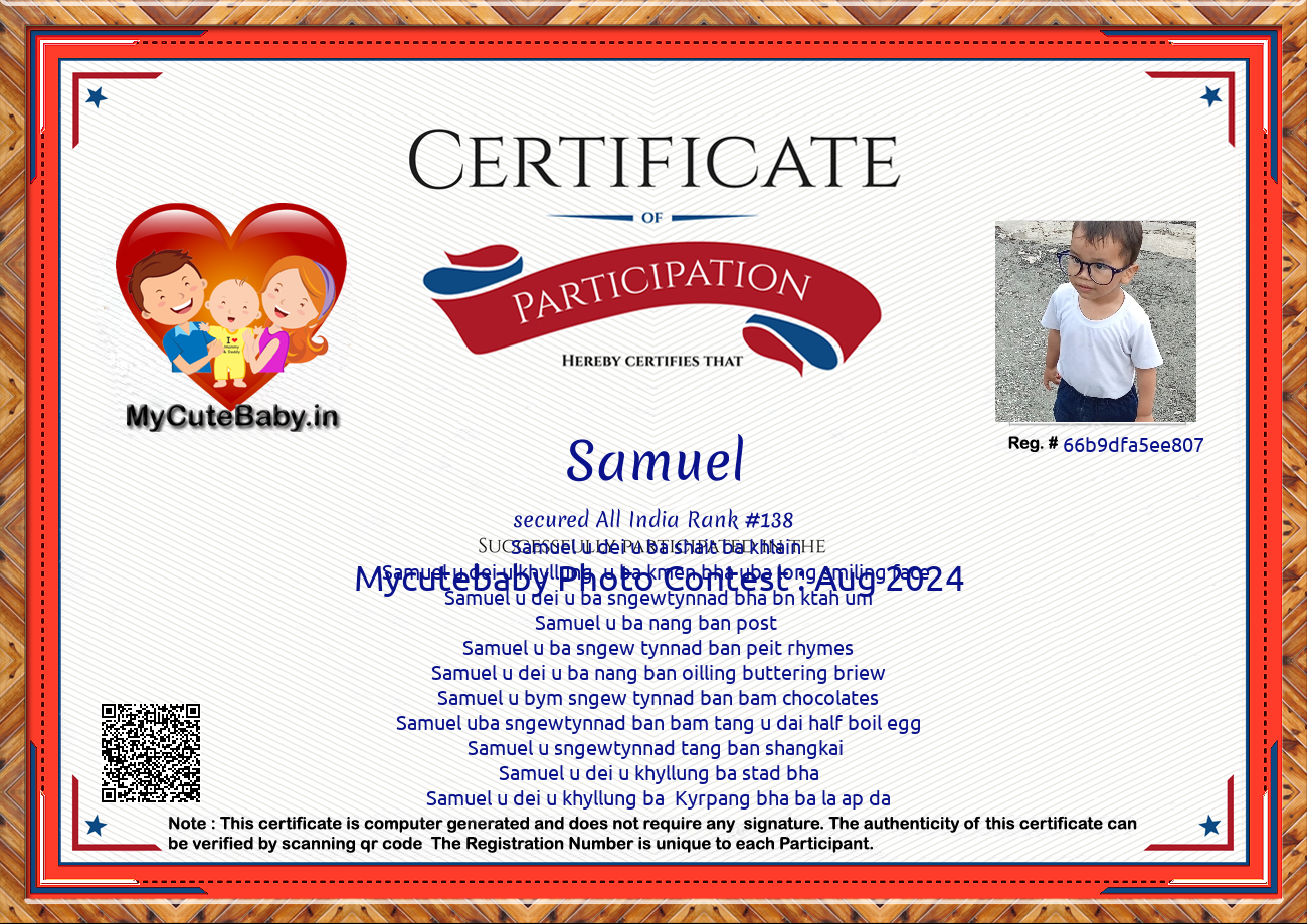Participation certificate for all the participants whose mycutebaby votes are more than 1000.