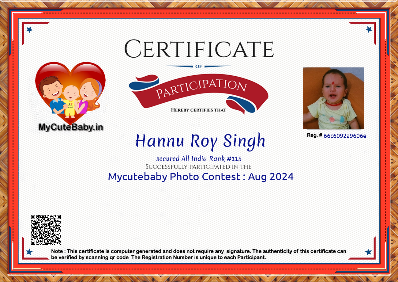 Participation certificate for all the participants whose mycutebaby votes are more than 1000.