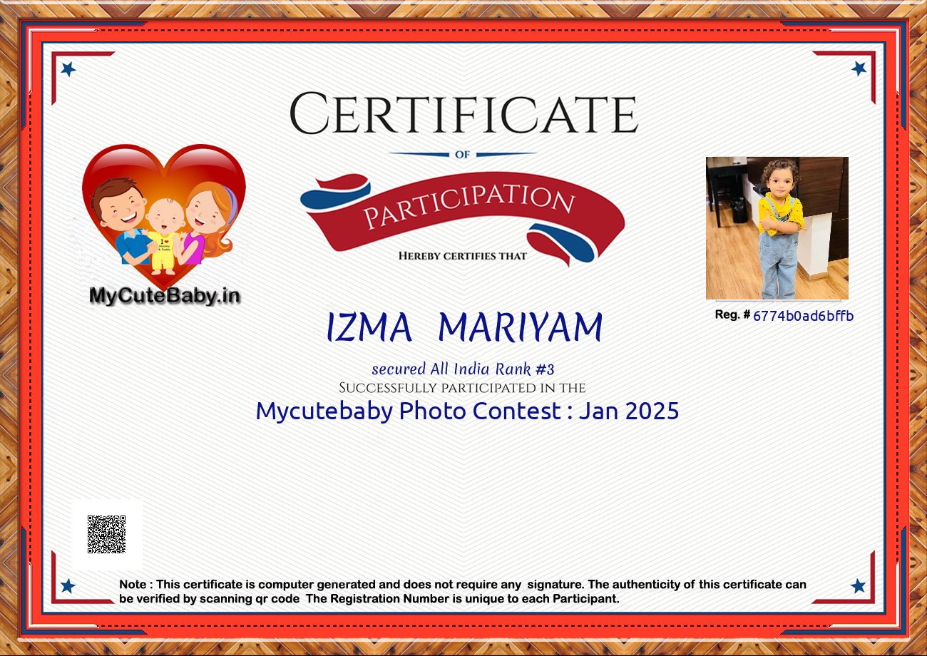 Participation certificate for all the participants whose mycutebaby votes are more than 1000.