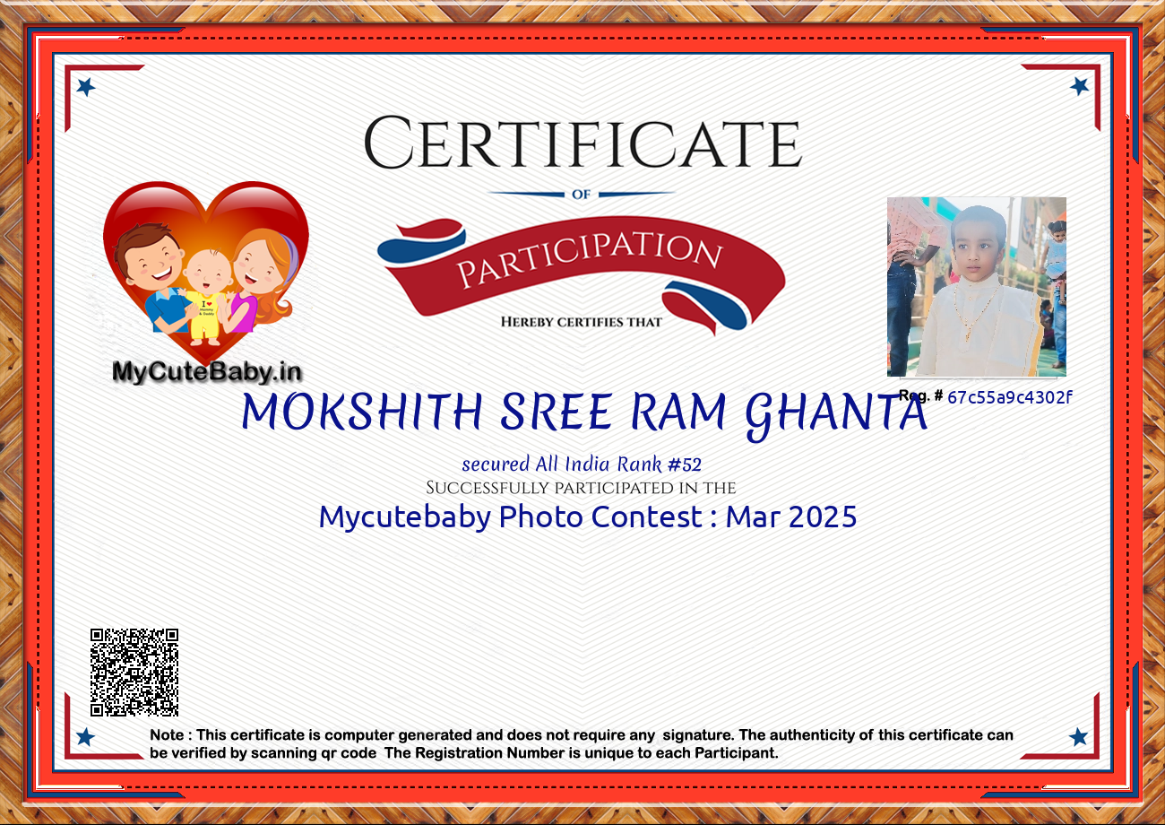 Participation certificate for all the participants whose mycutebaby votes are more than 1000.