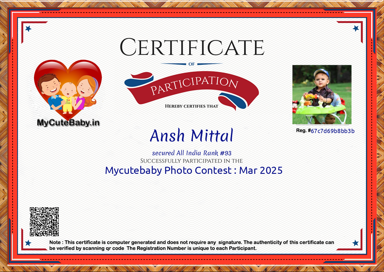 Participation certificate for all the participants whose mycutebaby votes are more than 1000.