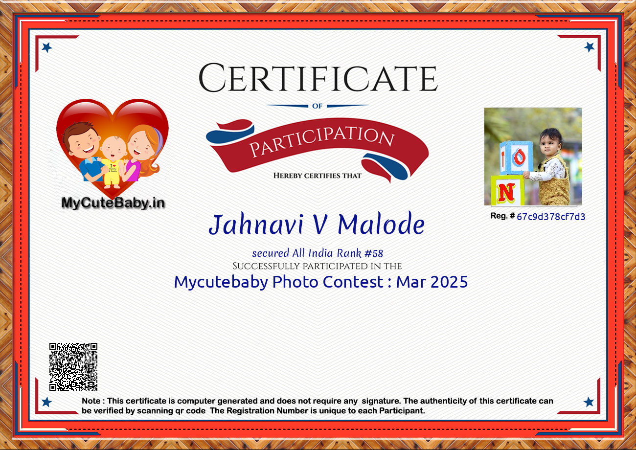 Participation certificate for all the participants whose mycutebaby votes are more than 1000.