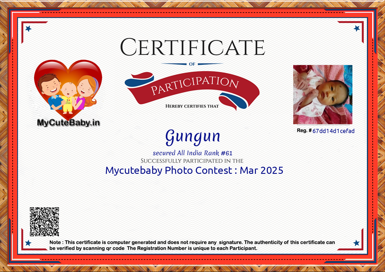Participation certificate for all the participants whose mycutebaby votes are more than 1000.
