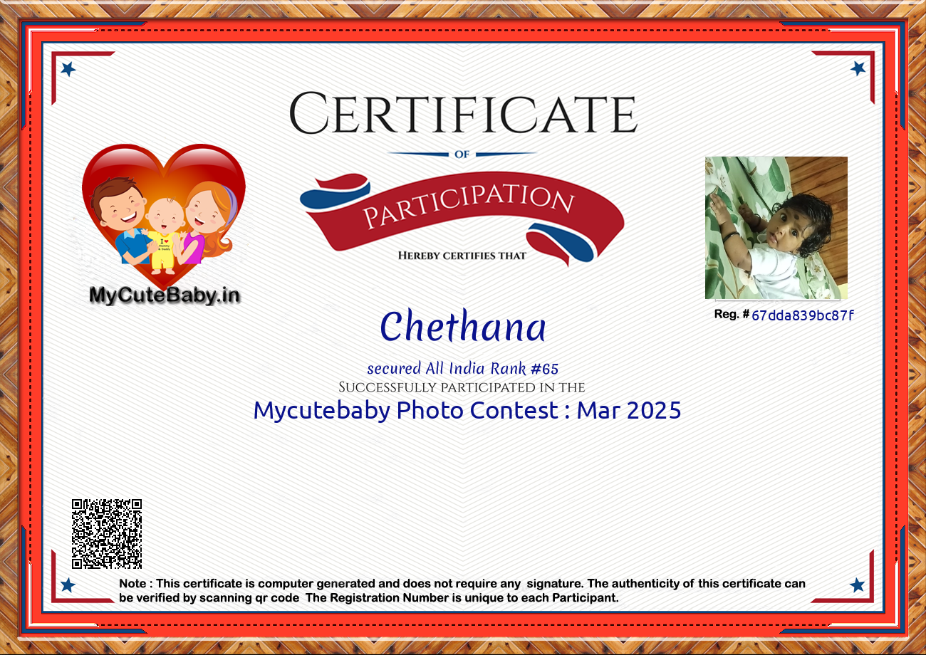 Participation certificate for all the participants whose mycutebaby votes are more than 1000.