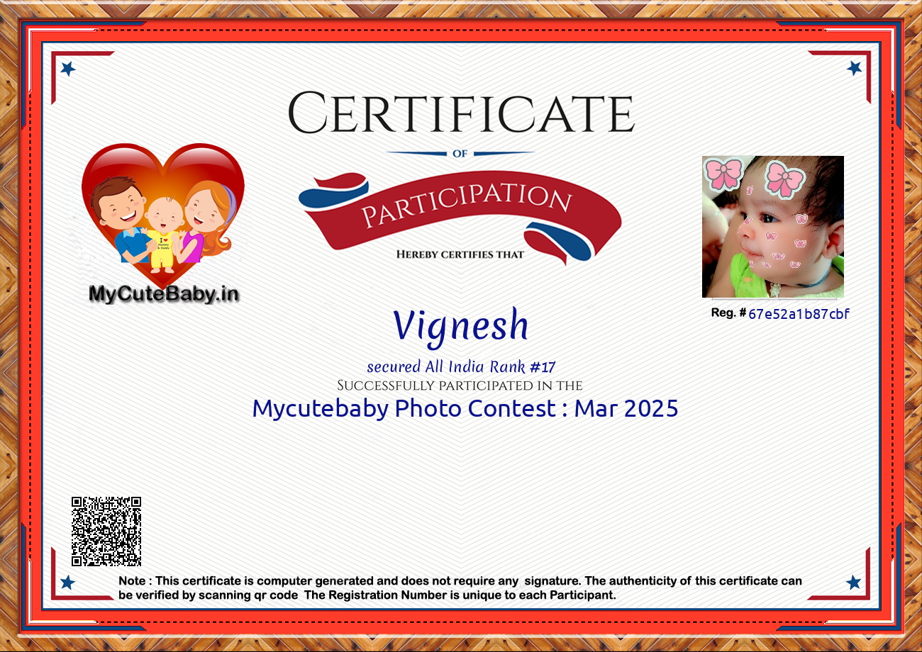 Participation certificate for all the participants whose mycutebaby votes are more than 1000.