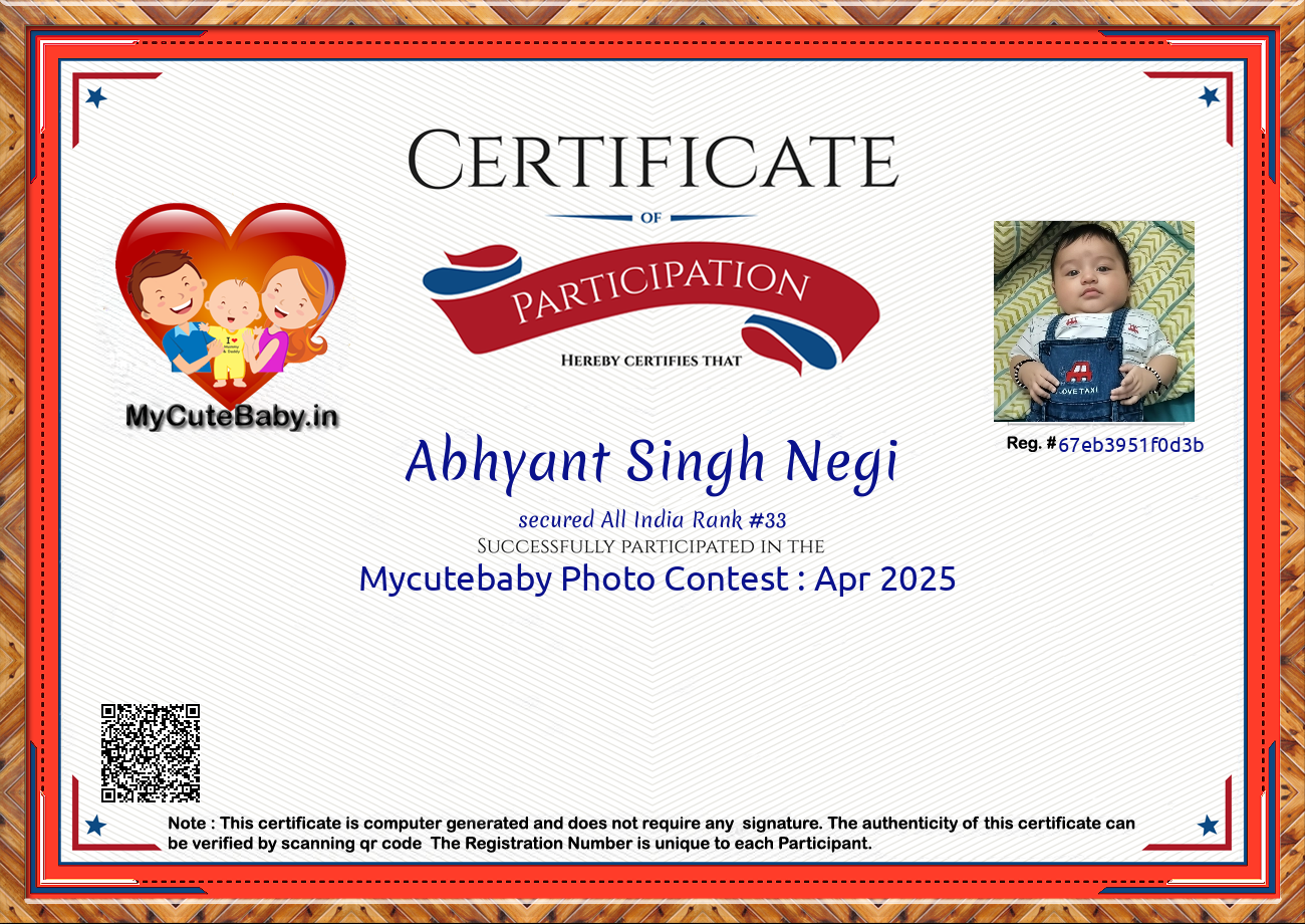 Participation certificate for all the participants whose mycutebaby votes are more than 1000.