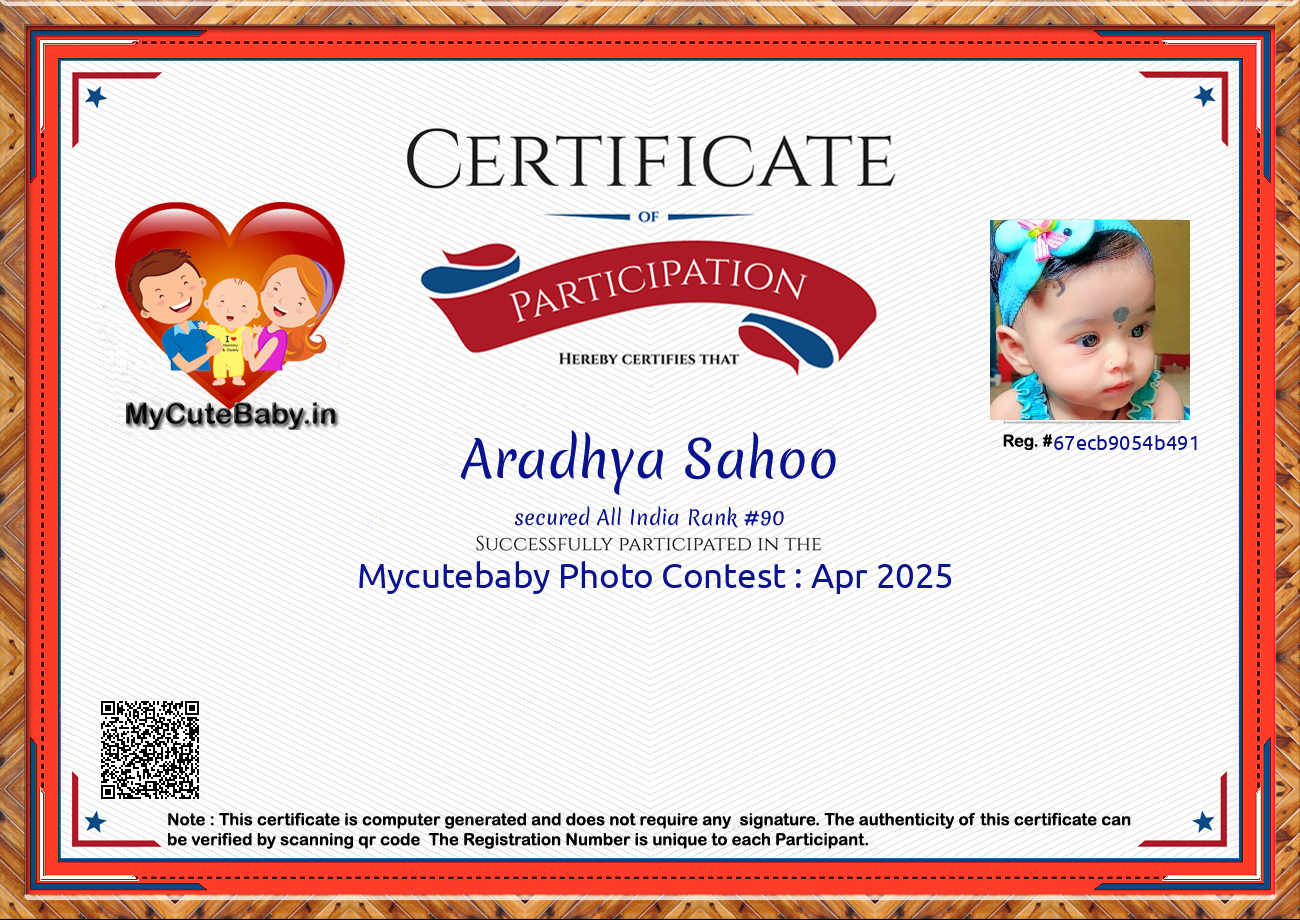 Participation certificate for all the participants whose mycutebaby votes are more than 1000.