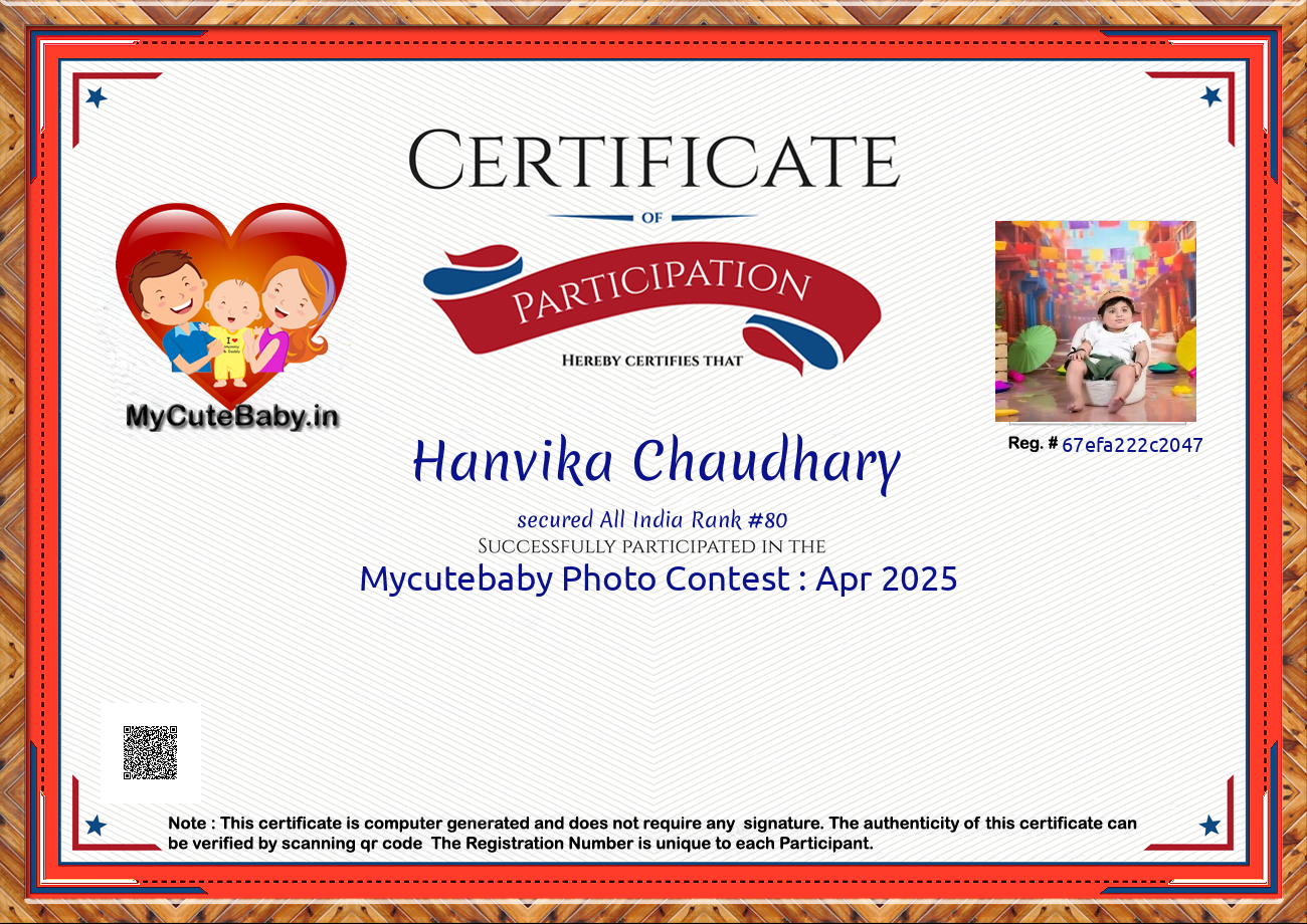 MyCuteBaby is India's most trusted and oldest baby photo contest with best voting securities & transparency system. MyCuteBaby has been organizing monthly contests since February 2017 and has declared 10,600 winners across 106 monthly contests from February 2017 to November 2025 .