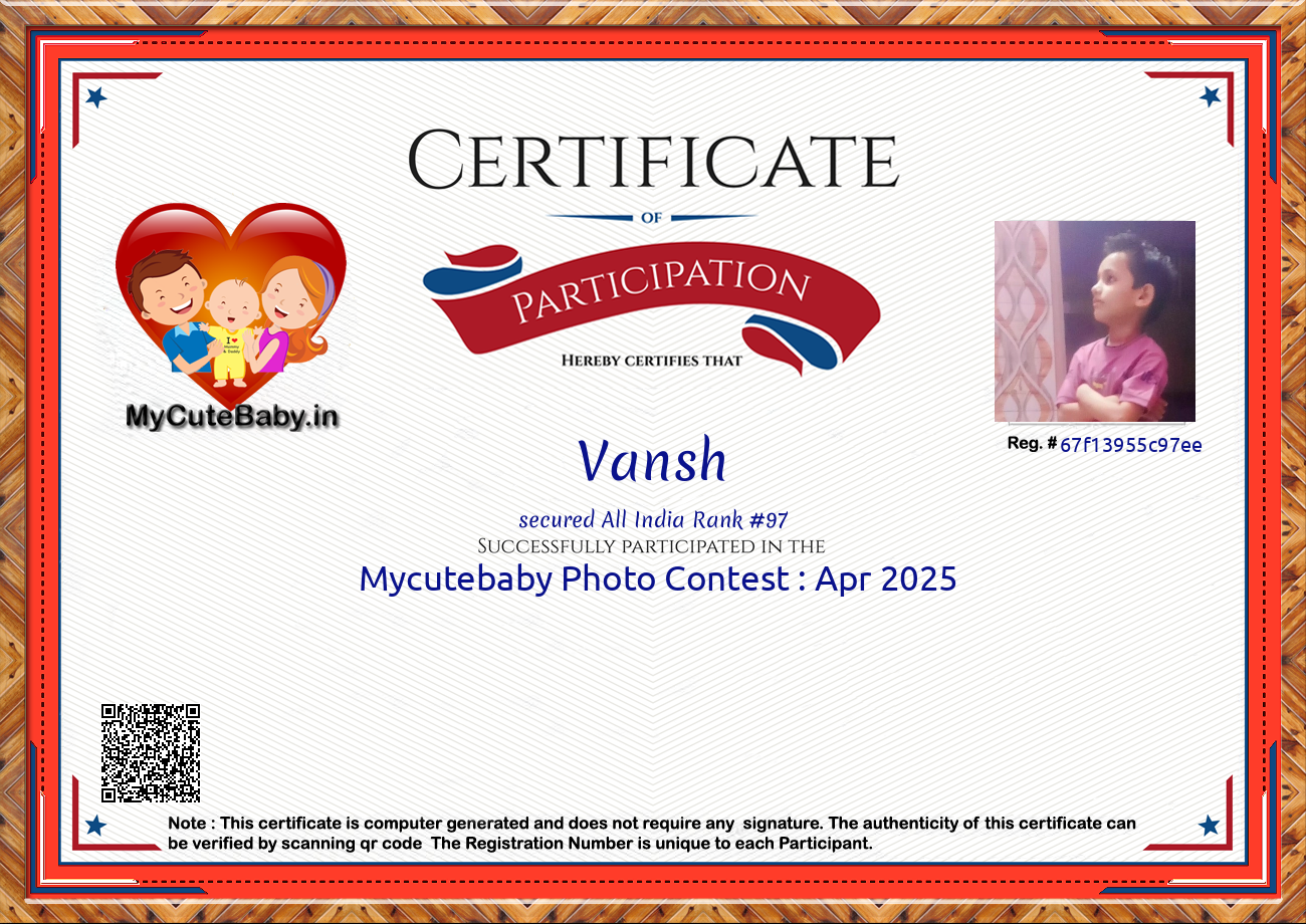 Participation certificate for all the participants whose mycutebaby votes are more than 1000.