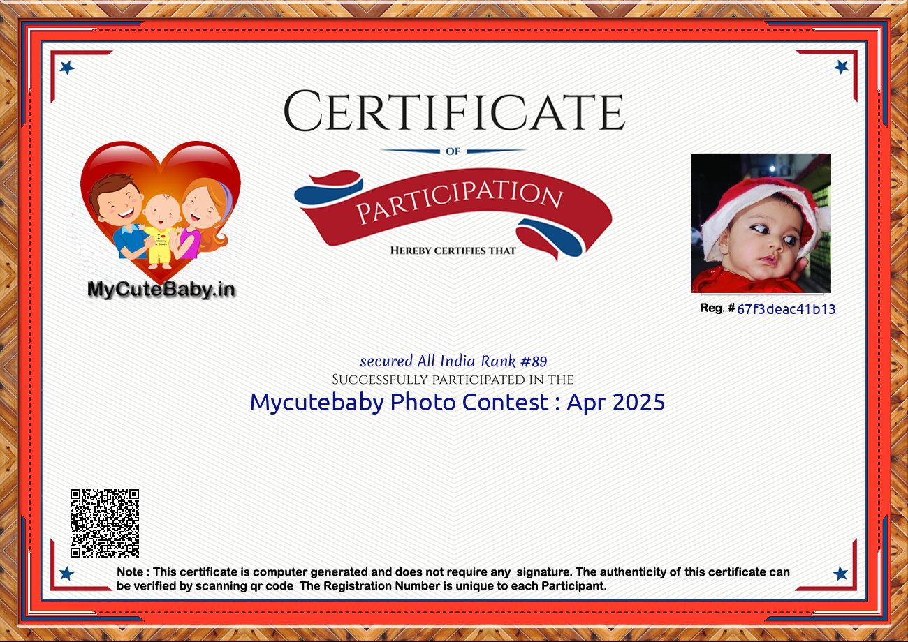 MyCuteBaby is India's most trusted and oldest baby photo contest with best voting securities & transparency system. MyCuteBaby has been organizing monthly contests since February 2017 and has declared 10,600 winners across 106 monthly contests from February 2017 to November 2025 .