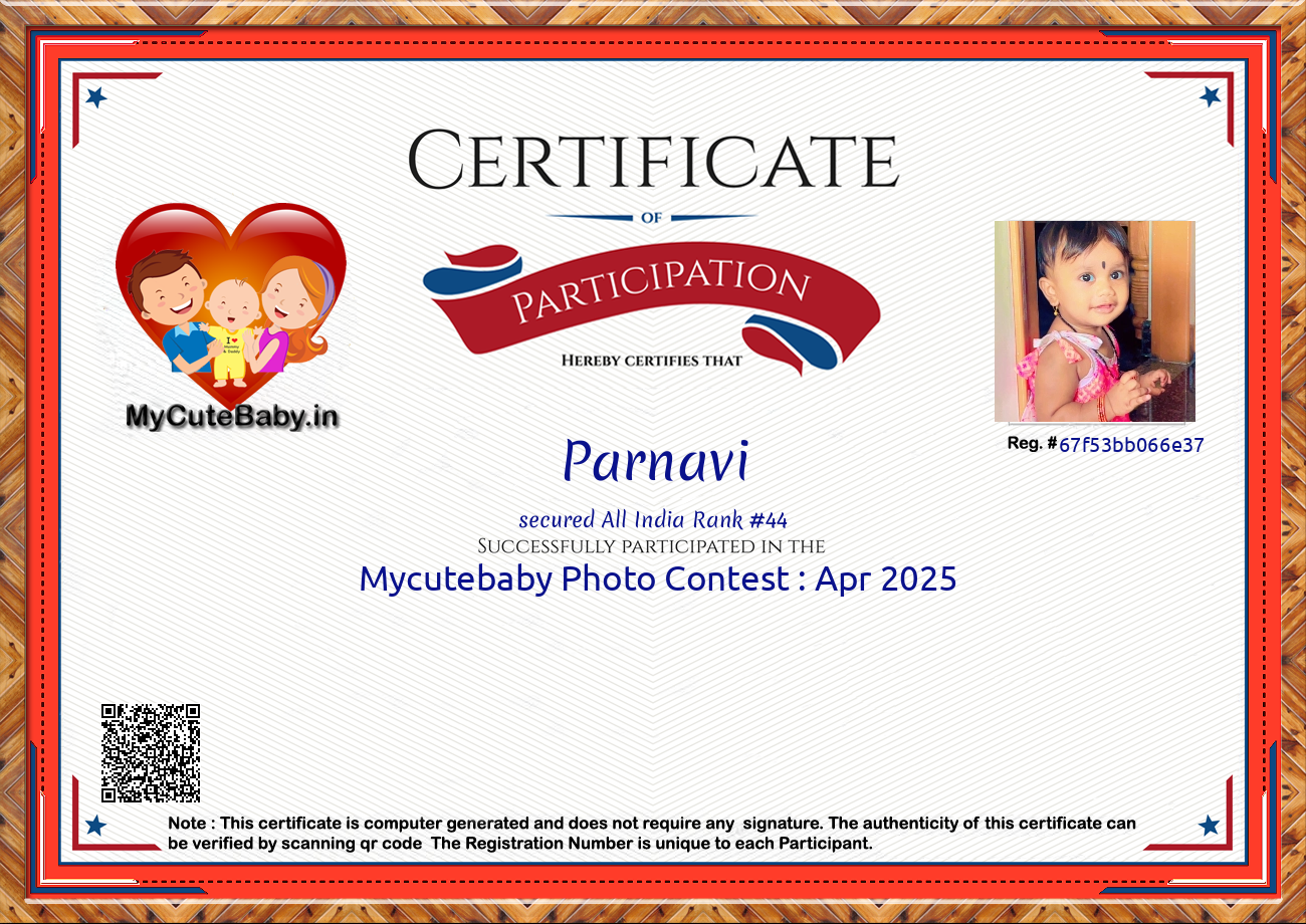 Participation certificate for all the participants whose mycutebaby votes are more than 1000.