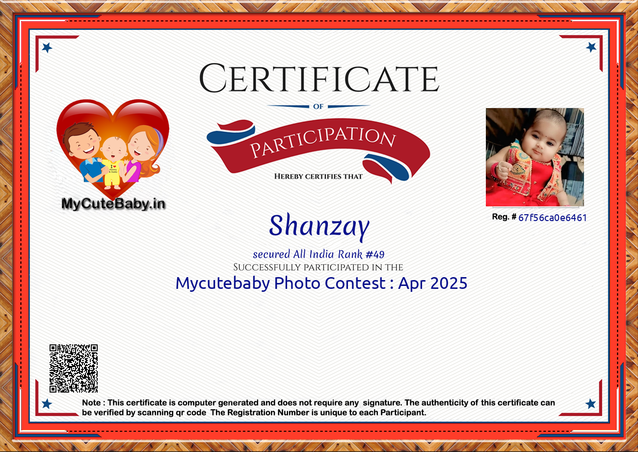 Participation certificate for all the participants whose mycutebaby votes are more than 1000.