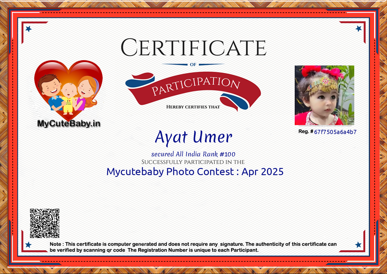 Participation certificate for all the participants whose mycutebaby votes are more than 1000.
