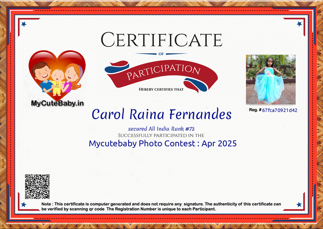Participation certificate for all the participants whose mycutebaby votes are more than 1000.