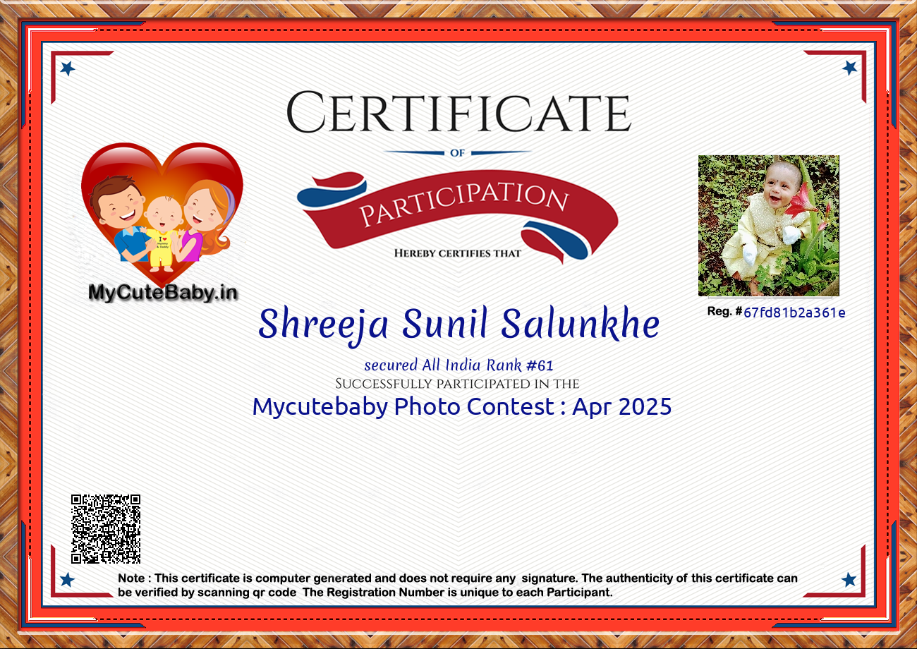 Participation certificate for all the participants whose mycutebaby votes are more than 1000.