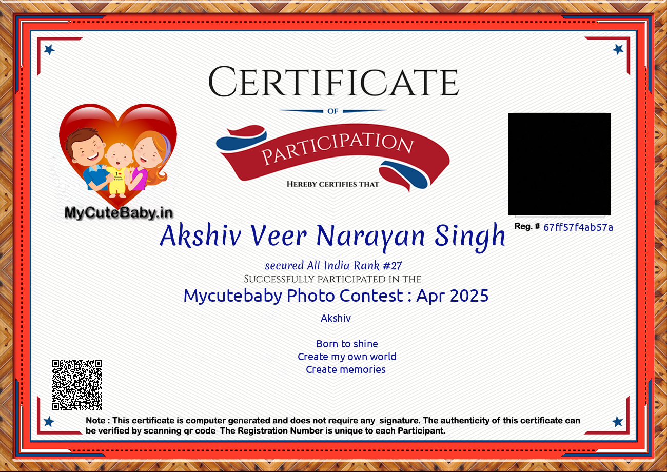 Participation certificate for all the participants whose mycutebaby votes are more than 1000.