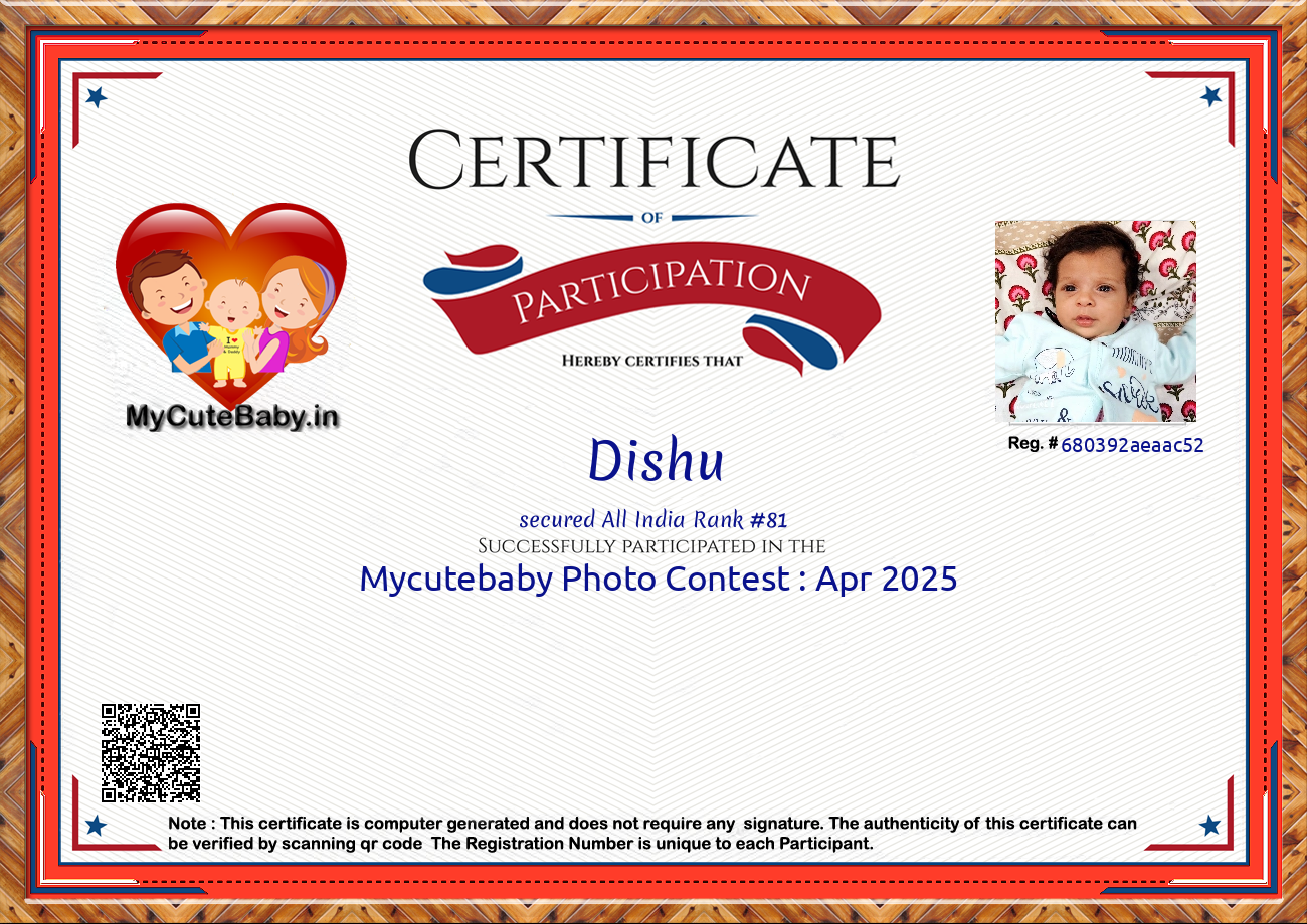 Participation certificate for all the participants whose mycutebaby votes are more than 1000.