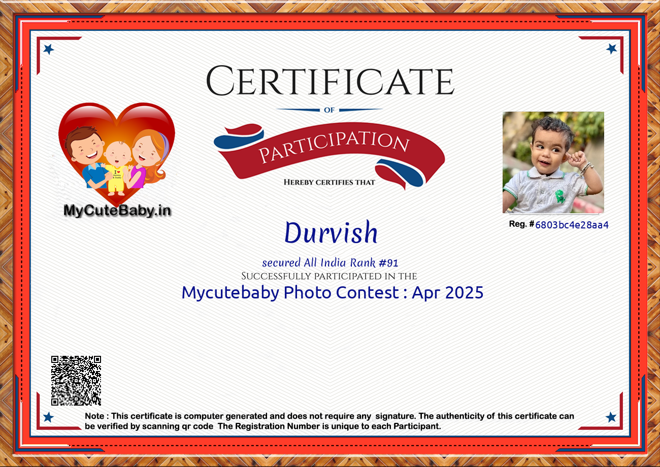 Participation certificate for all the participants whose mycutebaby votes are more than 1000.