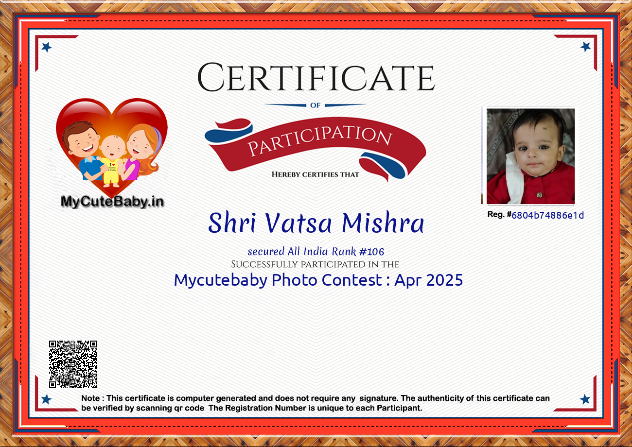 MyCuteBaby is India's most trusted and oldest baby photo contest with best voting securities & transparency system. MyCuteBaby has been organizing monthly contests since February 2017 and has declared 10,600 winners across 106 monthly contests from February 2017 to November 2025 .