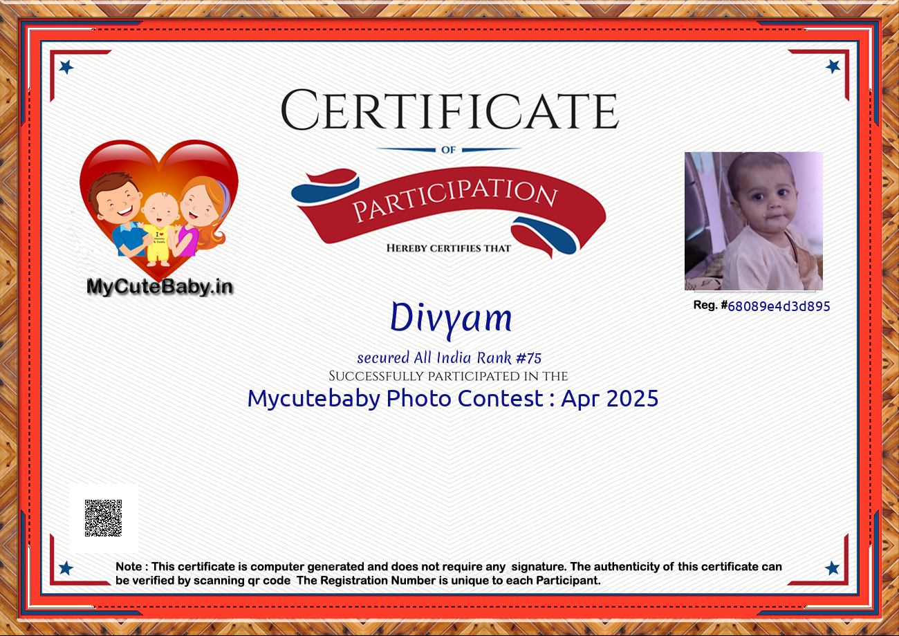 Participation certificate for all the participants whose mycutebaby votes are more than 1000.