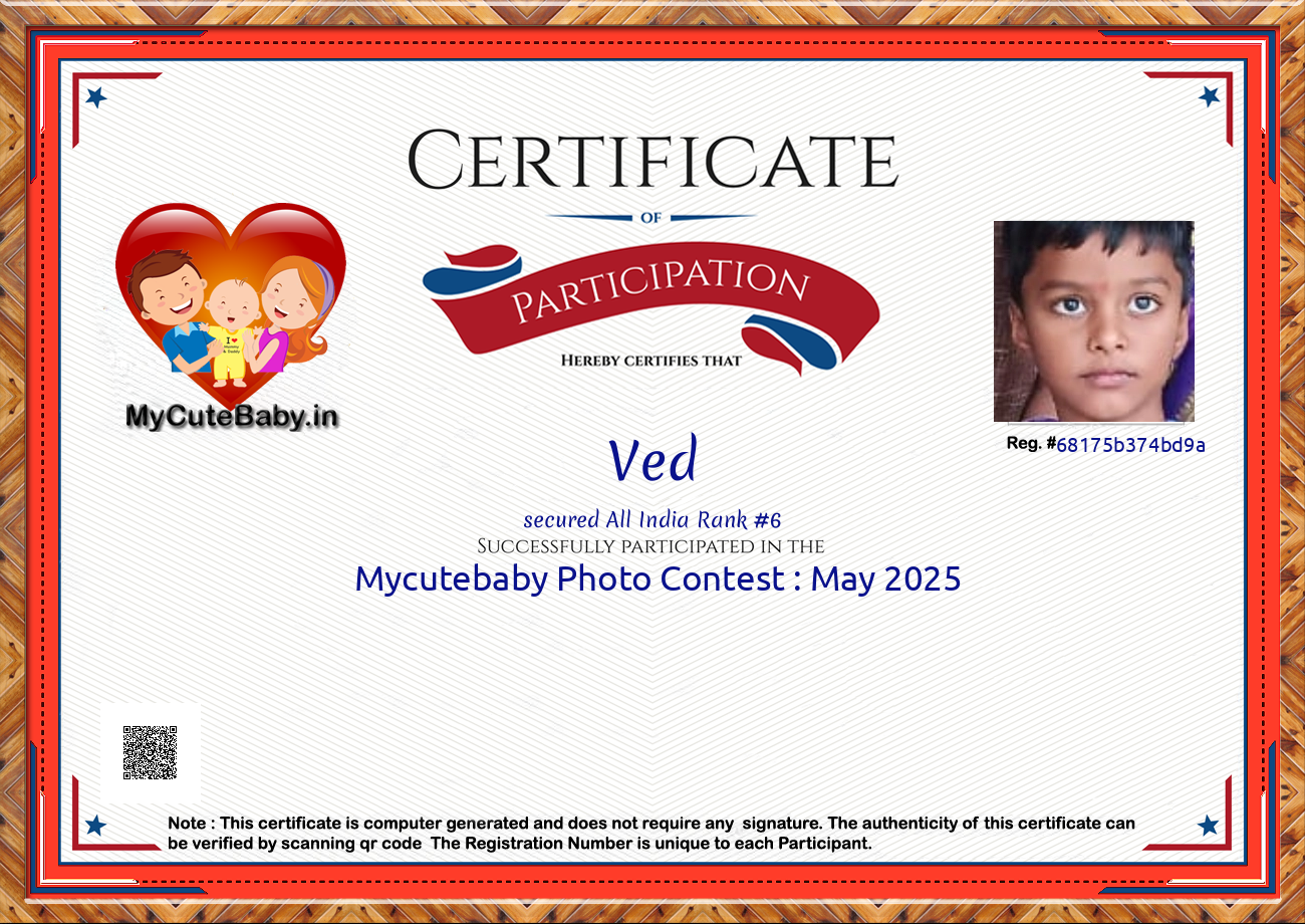 Participation certificate for all the participants whose mycutebaby votes are more than 1000.