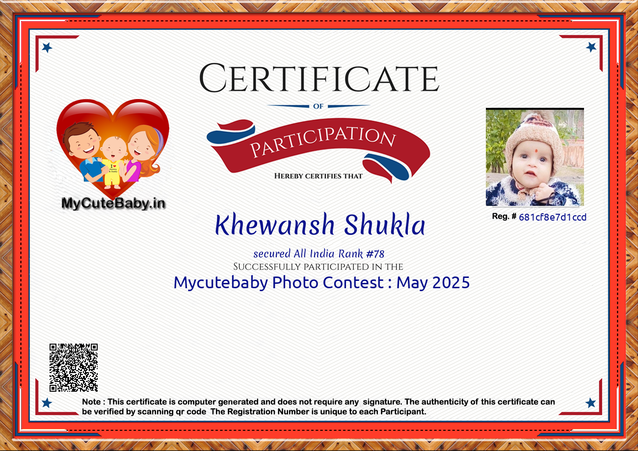 MyCuteBaby is India's most trusted and oldest baby photo contest with best voting securities & transparency system. MyCuteBaby has been organizing monthly contests since February 2017 and has declared 10,600 winners across 106 monthly contests from February 2017 to November 2025 .