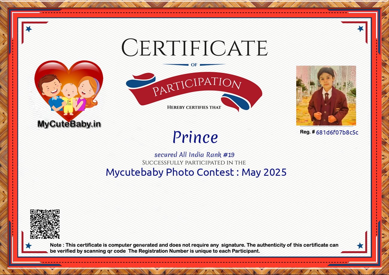 Participation certificate for all the participants whose mycutebaby votes are more than 1000.