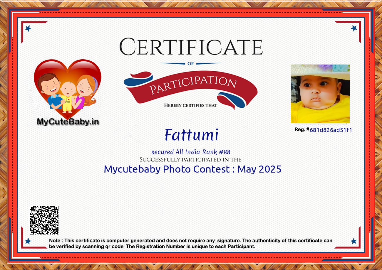 Participation certificate for all the participants whose mycutebaby votes are more than 1000.