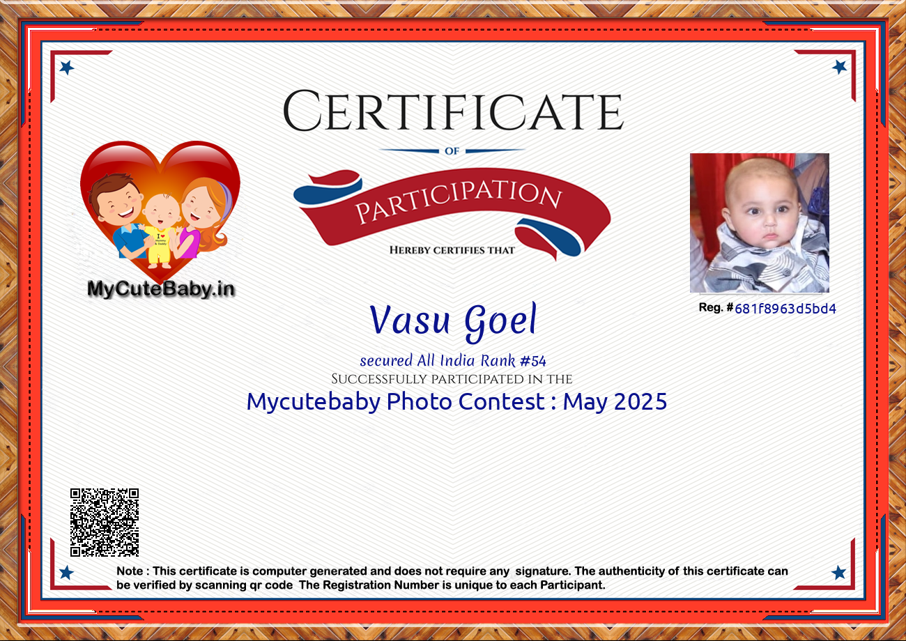 Participation certificate for all the participants whose mycutebaby votes are more than 1000.
