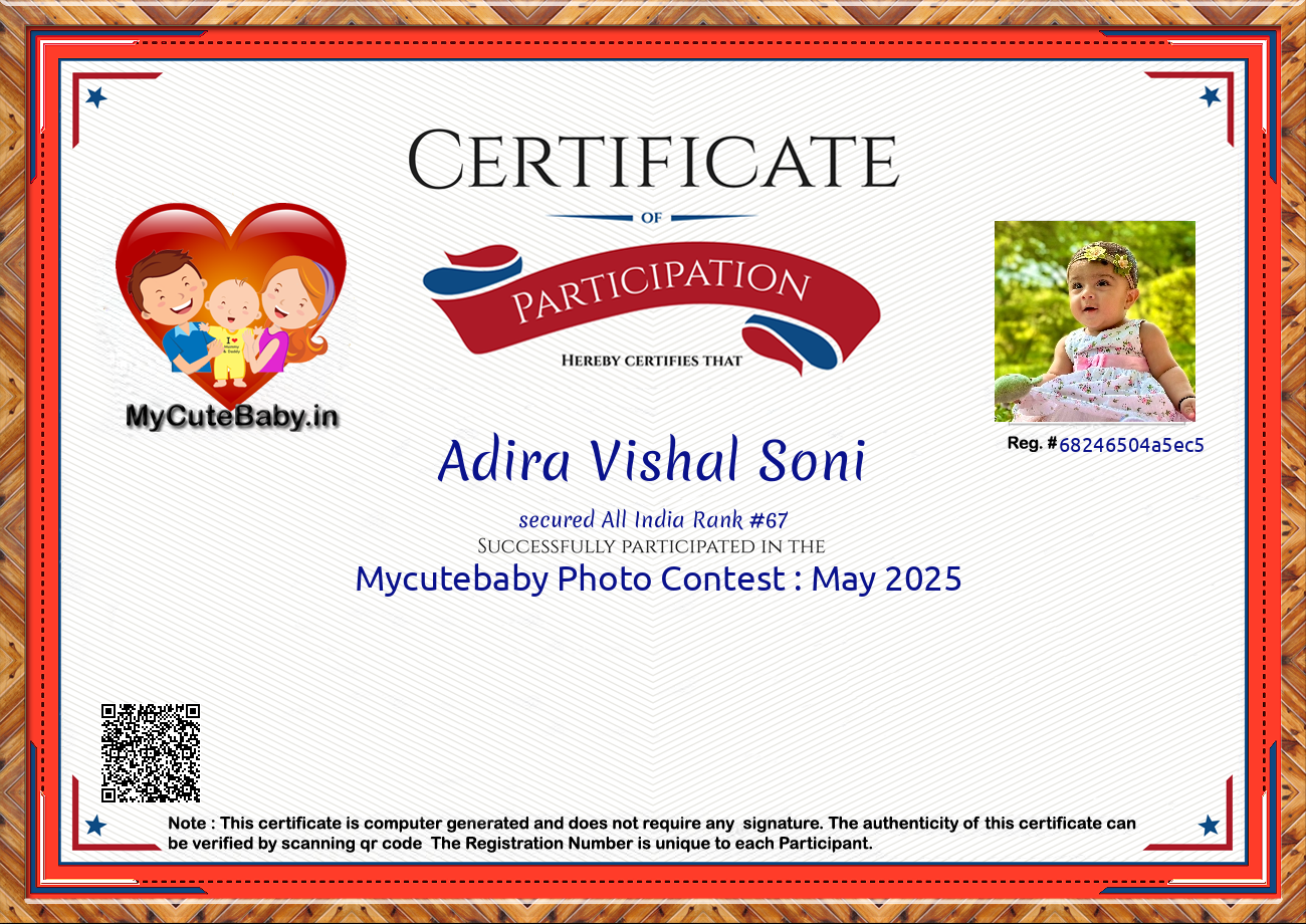 Participation certificate for all the participants whose mycutebaby votes are more than 1000.