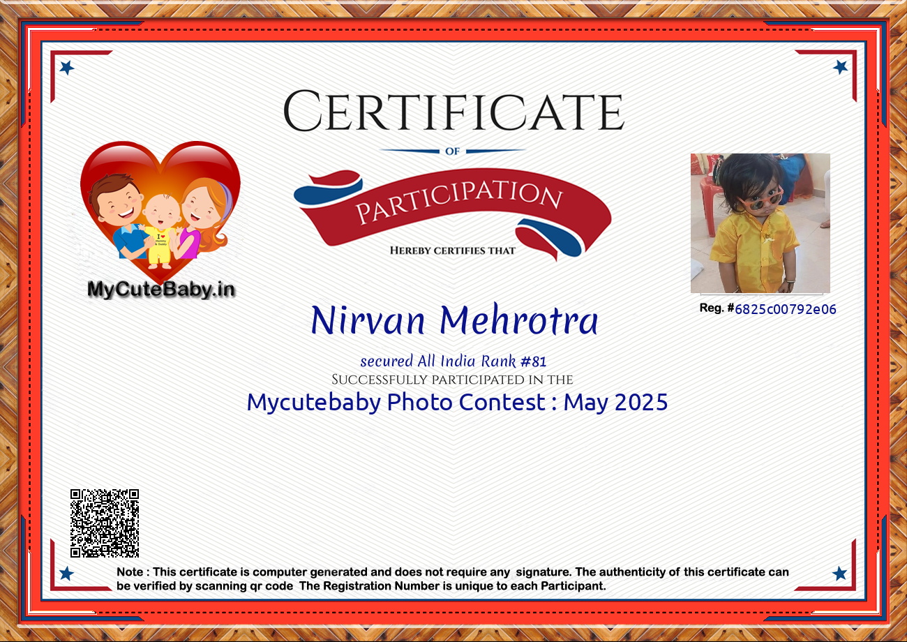 Participation certificate for all the participants whose mycutebaby votes are more than 1000.