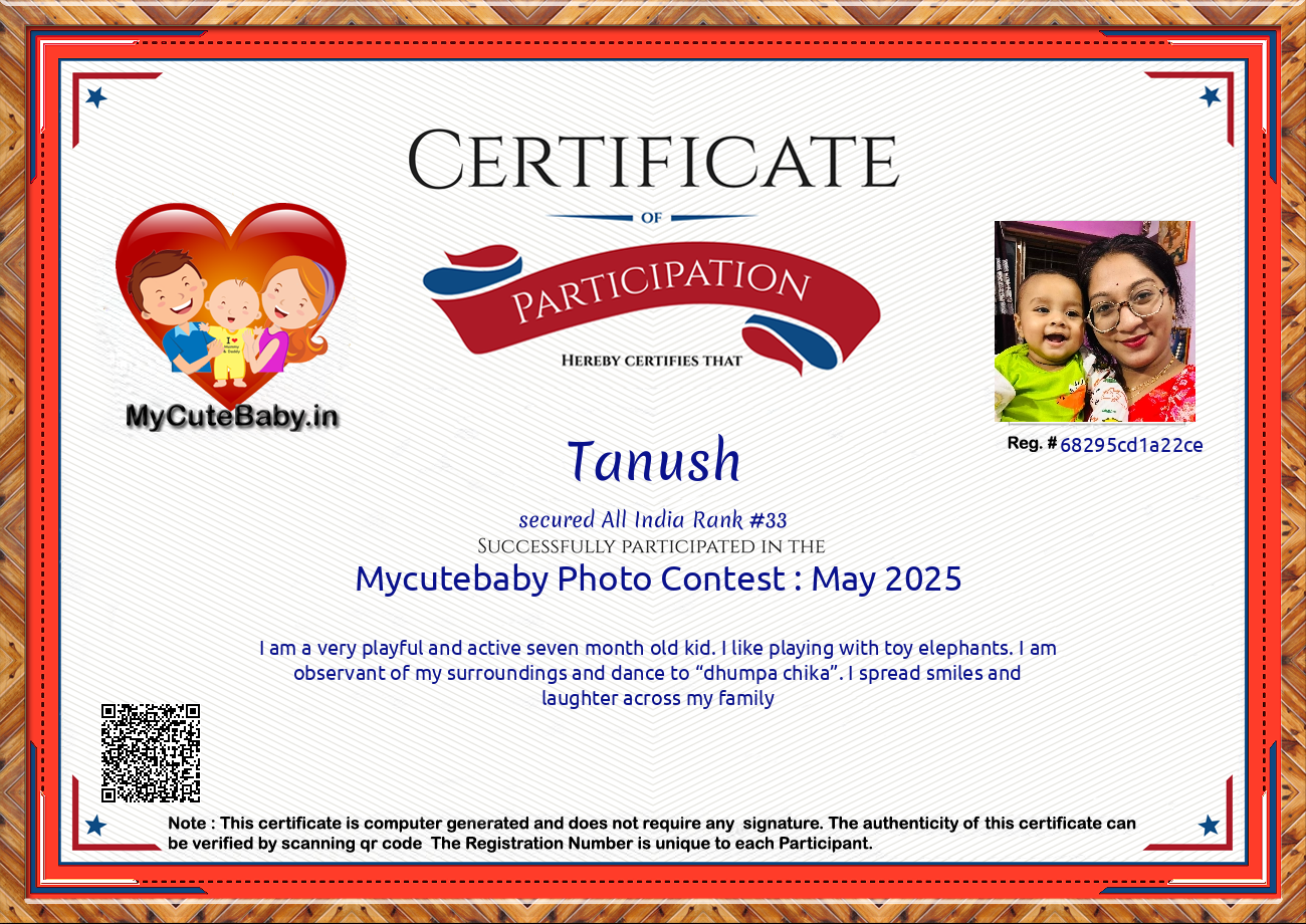 Participation certificate for all the participants whose mycutebaby votes are more than 1000.