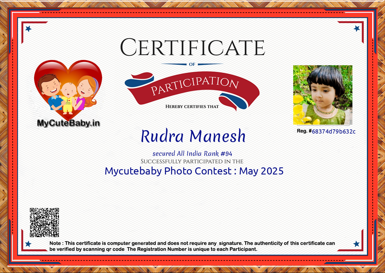Participation certificate for all the participants whose mycutebaby votes are more than 1000.