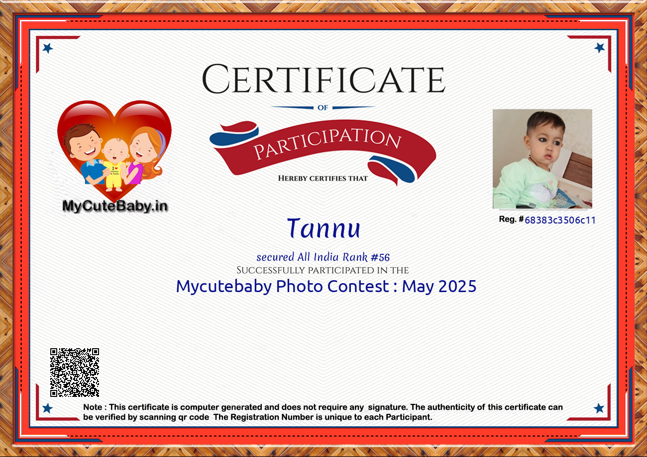 Participation certificate for all the participants whose mycutebaby votes are more than 1000.