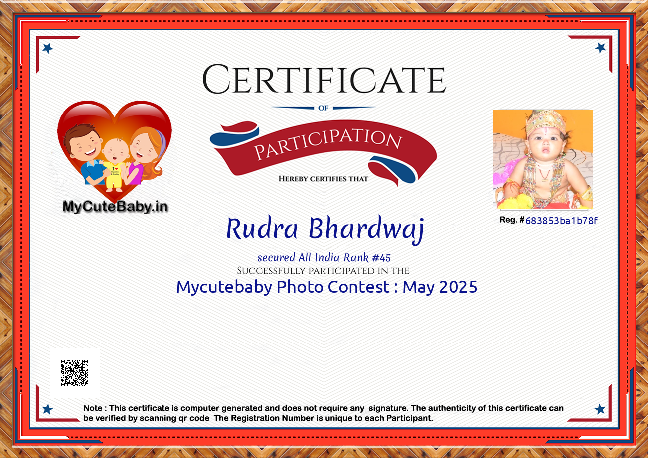 Participation certificate for all the participants whose mycutebaby votes are more than 1000.
