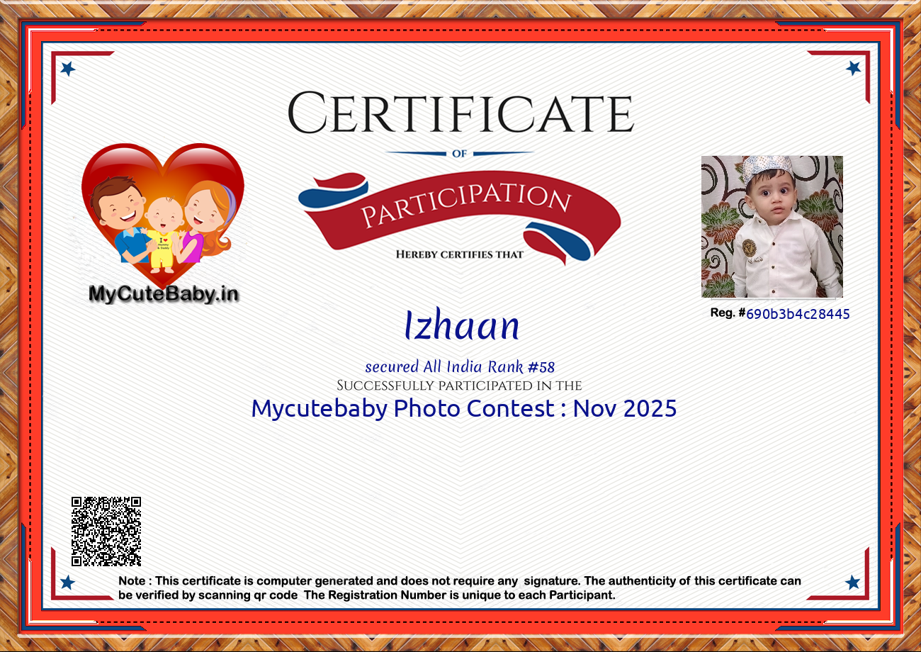 MyCuteBaby is India's most trusted and oldest baby photo contest with best voting securities & transparency system. MyCuteBaby has been organizing monthly contests since February 2017 and has declared 10,600 winners across 106 monthly contests from February 2017 to November 2025 .