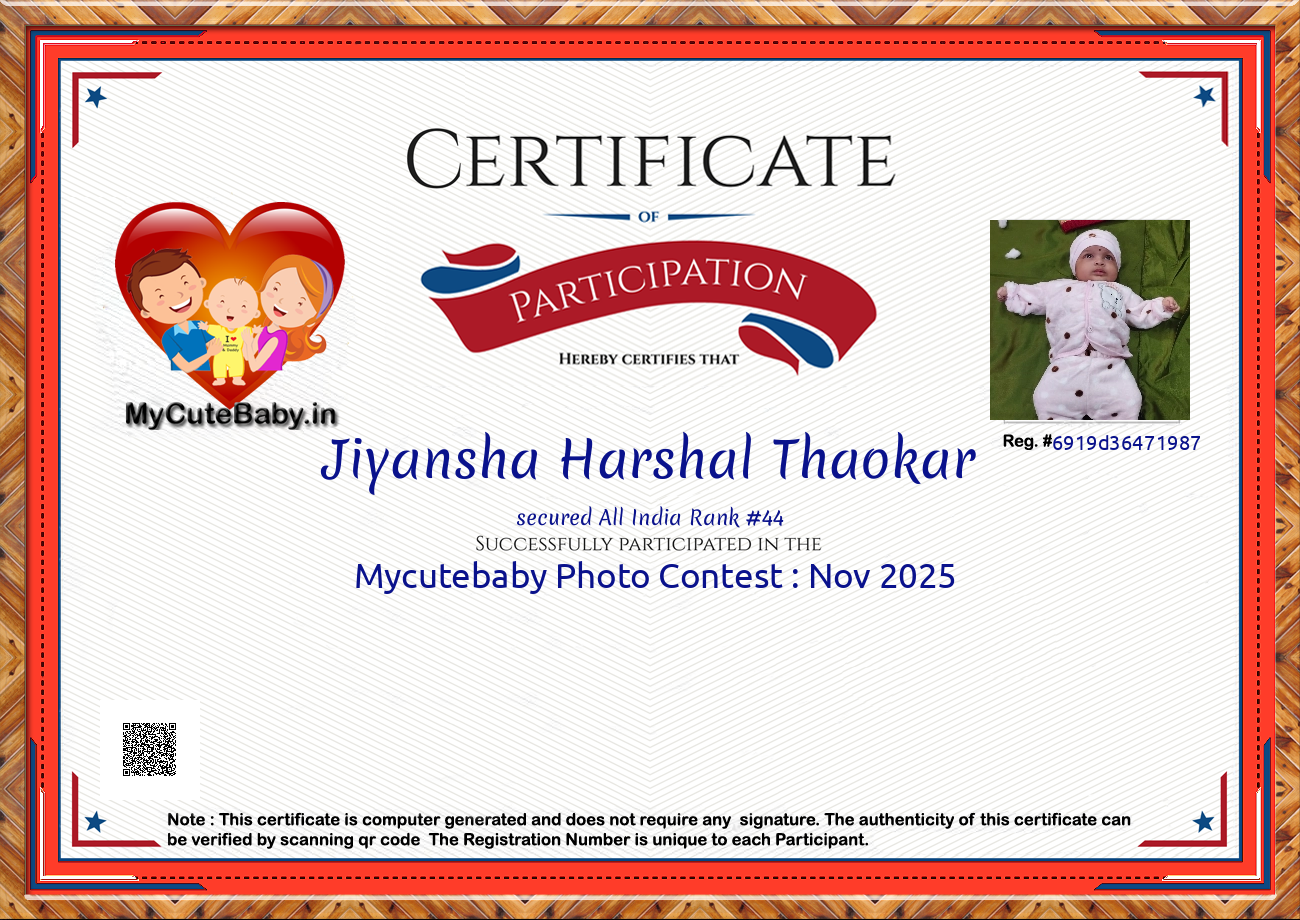Participation certificate for all the participants whose mycutebaby votes are more than 1000.