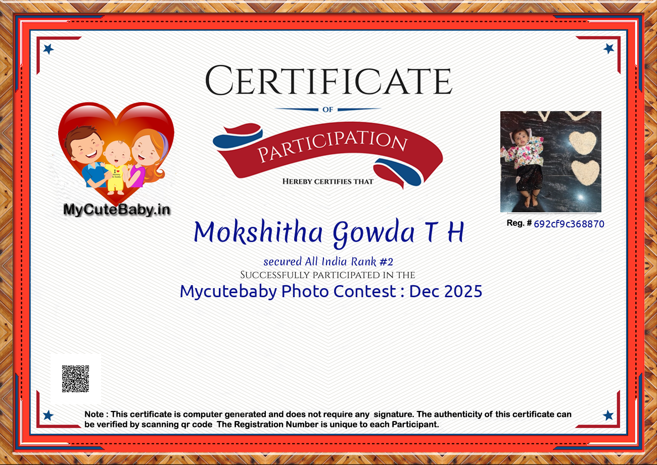 MyCuteBaby is India's most trusted and oldest baby photo contest with best voting securities & transparency system. MyCuteBaby has been organizing monthly contests since February 2017 and has declared 10,900 winners across 109 monthly contests from February 2017 to February 2026 .