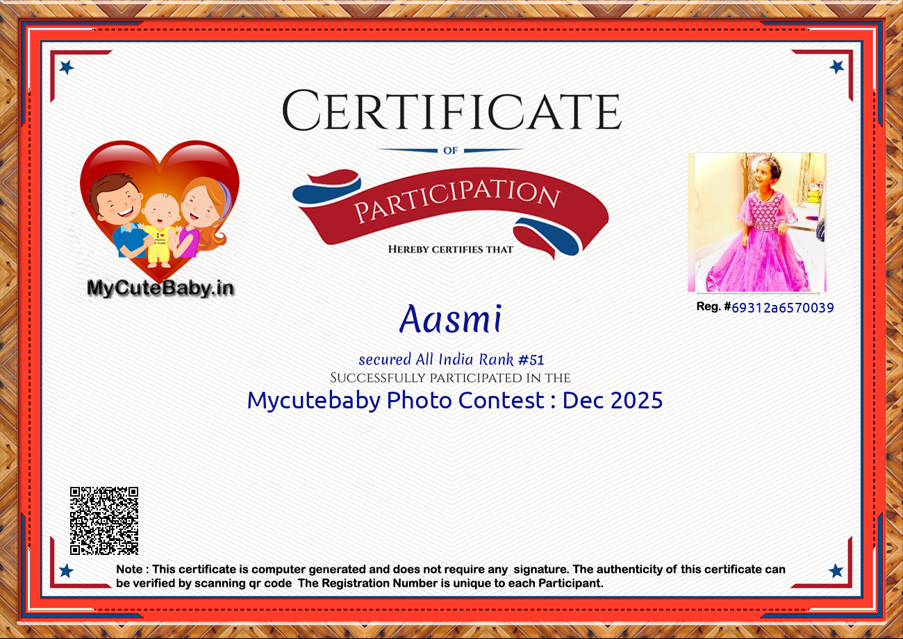 Participation certificate for all the participants whose mycutebaby votes are more than 1000.